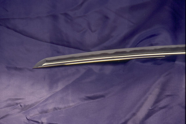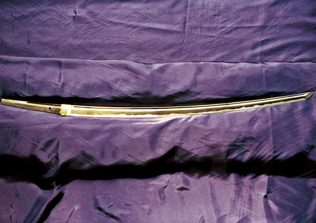 この太刀は、鎌倉時代中期の代表的な刀匠、備前長船派の創始者である光忠の子・順慶長光の作です。なお、この太刀は古くは真田幸村が所持していたものと伝えられてます。長さ71.9㎝、反り2.2㎝で、刀身の焼刃模様は、丁字の乱れ刃で映り立っていて極めて美しく健全です。