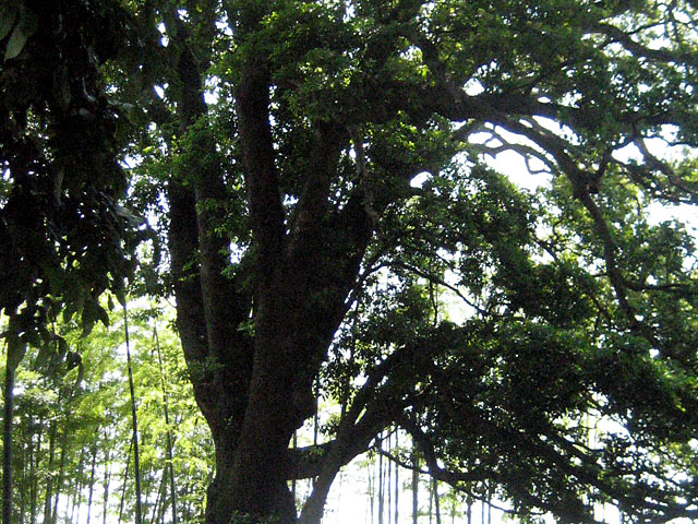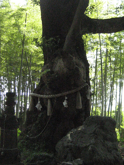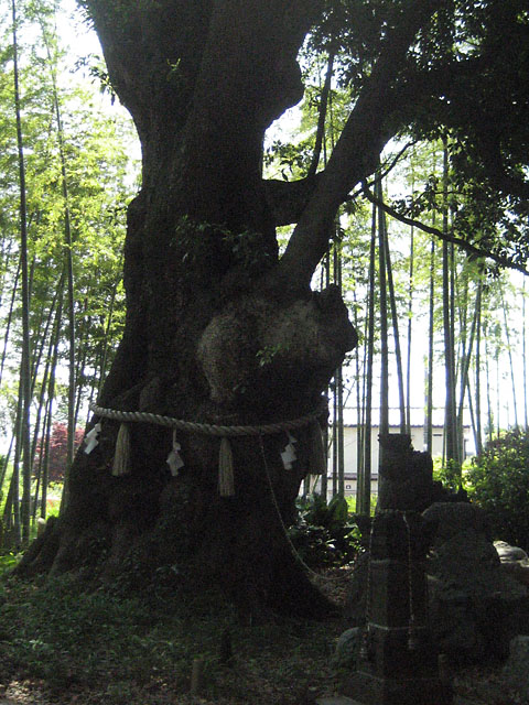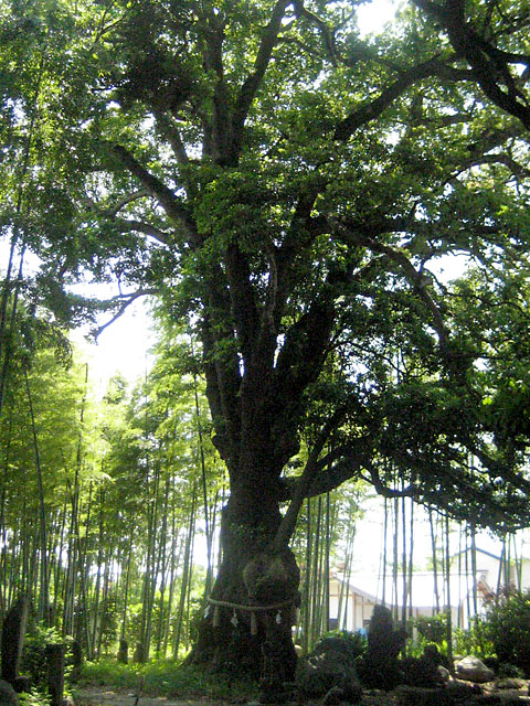 クスノキ科の常緑高木で、高さは約20m、根回りの太さは約5mあり、樹齢は少なくとも600年以上と推定されています。タブノキは本州中部以南の暖地の海岸近くに自生するのが一般的で、関東の内陸部でこれだけ成長する例は珍しく、貴重な天然記念物です。