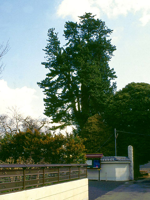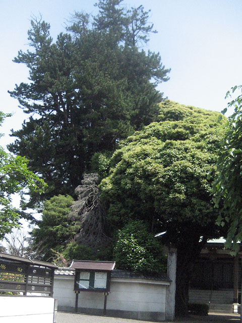 本堂前庭に生育する往時の植栽樹です。日本西南部の太平洋側に自生しているスギ科の植物で、日本特産の常緑樹です。樹高18m、目通り4.5m、枝張り5.5mを測ります。真乗院は日光御成道の鳩ヶ谷宿と大門宿との間にあり、日光社参の折には徳川将軍の御休所とされました。街道の変化を静かに見守ってきた大木です。