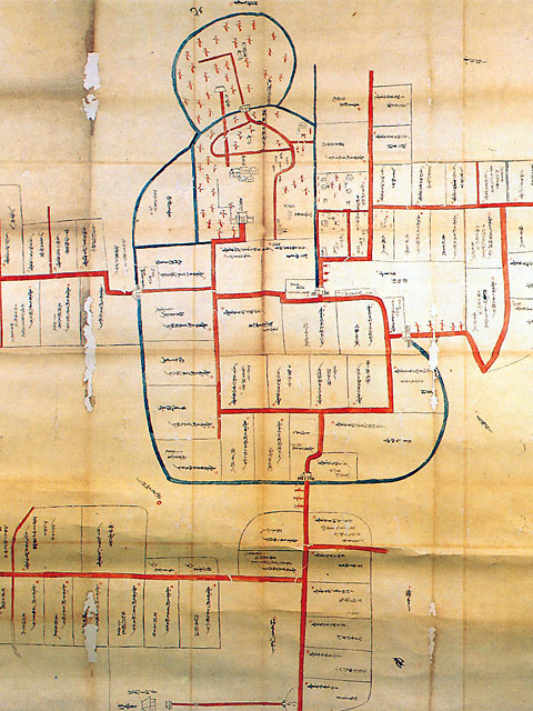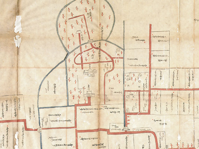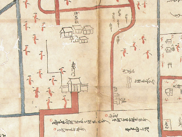 この絵図面は、関東代官伊奈半十郎忠治が寛永6年(1629)に在地支配のために築き、以後163年間、寛政4年(1792)に改易に処せられるまで在地支配の拠点となっていた赤山陣屋の全容を記した唯一の資料です。陣屋の構造と周辺の状況を知るうえで欠かせない貴重な文化財です。