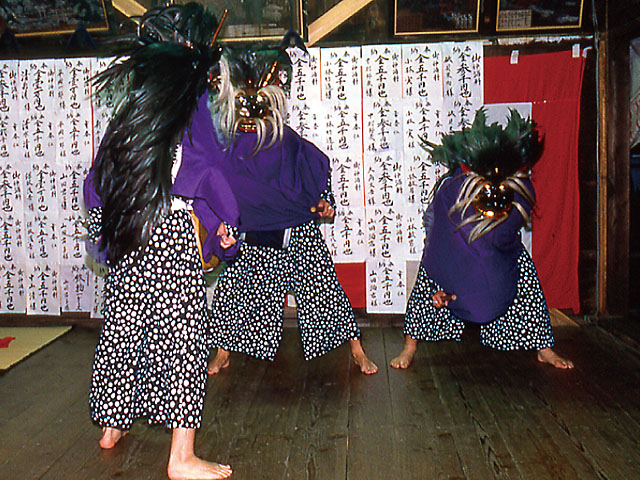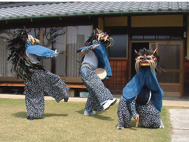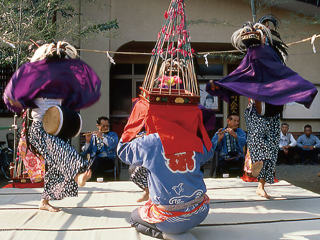 江戸袋の獅子舞は、旧江戸袋村に江戸時代初期から伝えられてきました。春は4月、秋は10月のそれぞれ第2日曜日に、氷川神社境内を中心に悪魔祓い、五穀豊穣、氏子繁盛を祈願して実施されている三頭立獅子舞です。昔は「江戸袋のバッタバッタ舞」として親しまれ、現在、舞手は小、中、高校生が務めています。