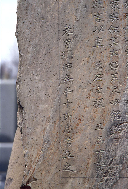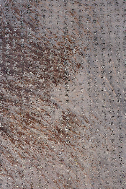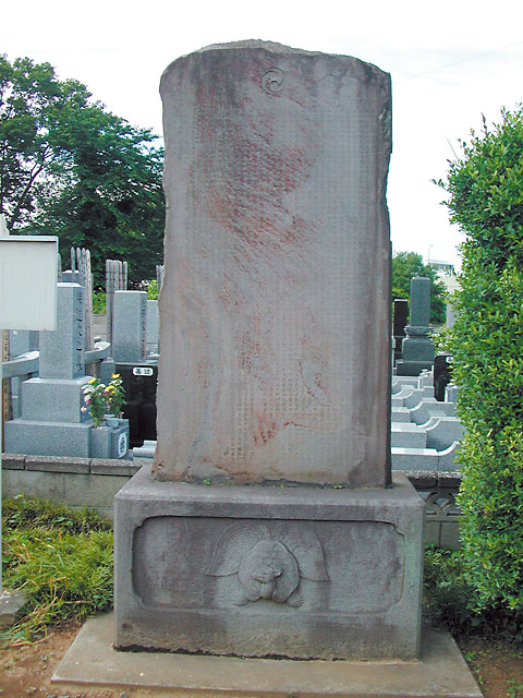 関東代官伊奈半十郎忠常が、寛文13年(1673)、弘文学院林之道甫(鵞峯)の文により、祖先の功績を讃えるために、菩提寺である源長寺に建立したものです。高さ190cm、幅100cm、厚さ21cm、碑台は正面中央に亀趺が陽刻されており、高さ61cm、幅130cm、奥行き72cmを測り、石材は根府川石です。