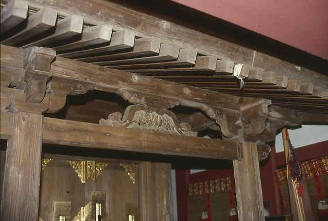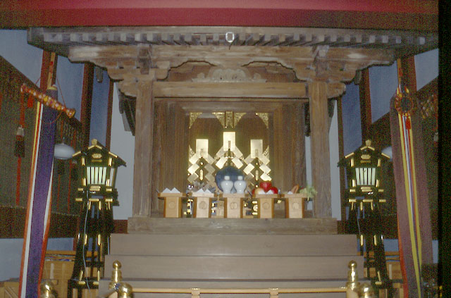 当社は、古くは勢貴大明神として、洪水災難除けの神社で、旧入間川の大洪水によって、旧文蔵村(現さいたま市南区)より流れついたと伝えられています。内本殿は、間口1.5m、奥行1.31mの身舎(内陣)の前面に向拝を付した流造り板葺きの一間社です。これは、向拝部のみ床をつけた「見世棚造り」の桃山期の建造物として貴重です。