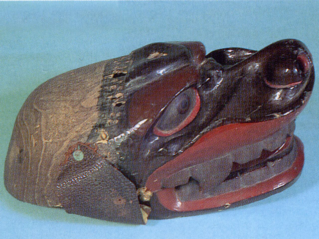 長徳寺には、獅子頭3頭と、神楽面10面が保存されており、そのうち獅子頭には、元禄11年(1698)、宝永7年(1710)、寛延元年(1748)、明和元年(1764)の修繕時の墨書銘があり、元禄11年以前に製作されたことがわかります。また『寒松日記』には、寛永7年(1630)と寛永9年(1632)に記述が見られ、毎年8月15日に、八幡神社(鶴ヶ丸八幡神社)で獅子舞が奉納されたことが明らかです。当該期の寺と神社の関係や年中行事としての祭りの姿を伝える重要な資料です。