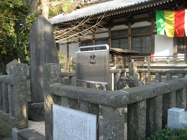 江戸時代後期に隆盛した民衆宗教である富士講を深め、不二道を新たに立ち上げた小谷三志の墓です。小谷家の菩提寺である地蔵院にあり、三志の遺言によって墓石には自然石が用いられています。質素倹約を重んじた不二道の思想を反映した質素な墓です。