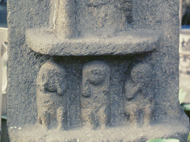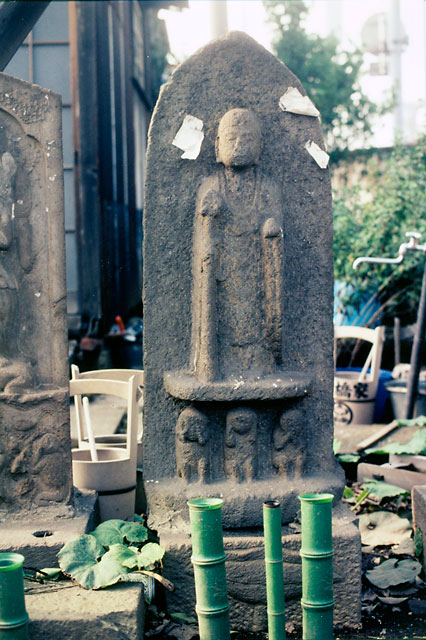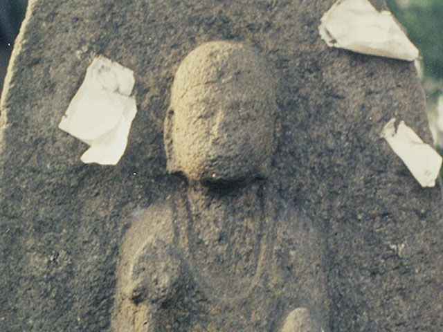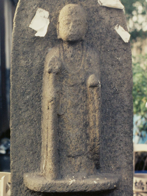 地蔵菩薩像と三猿が彫られた庚申塔です。銘文によると、寛文4年(1664)に平柳領(川口市東南部)の村々の10名によって建立されました。市内では最も早い時期の庚申塔の一つで、江戸前期における当地の民間信仰に関する貴重な資料です。