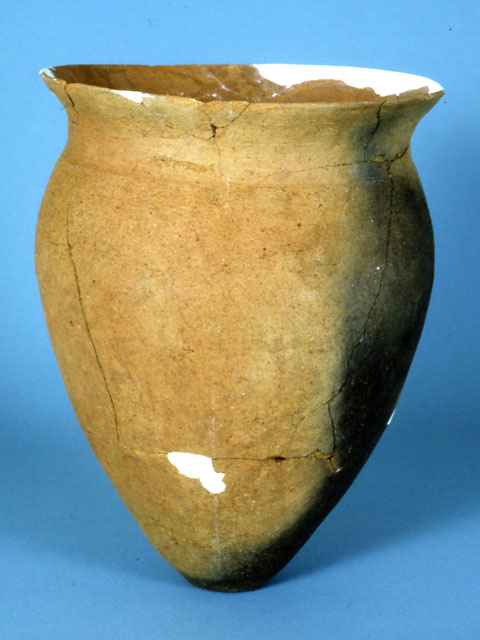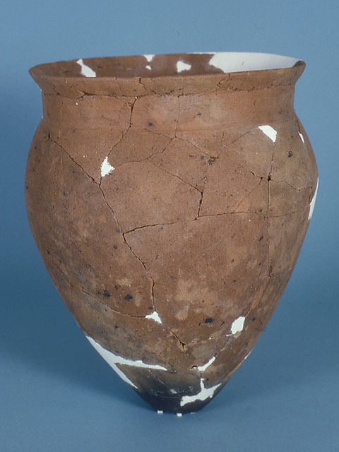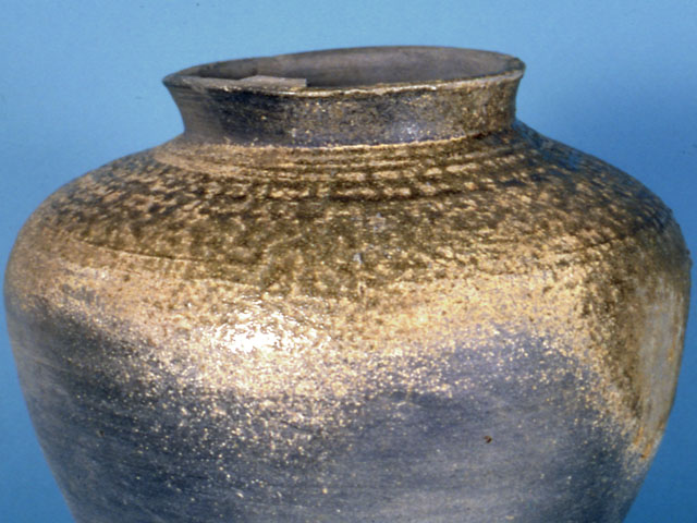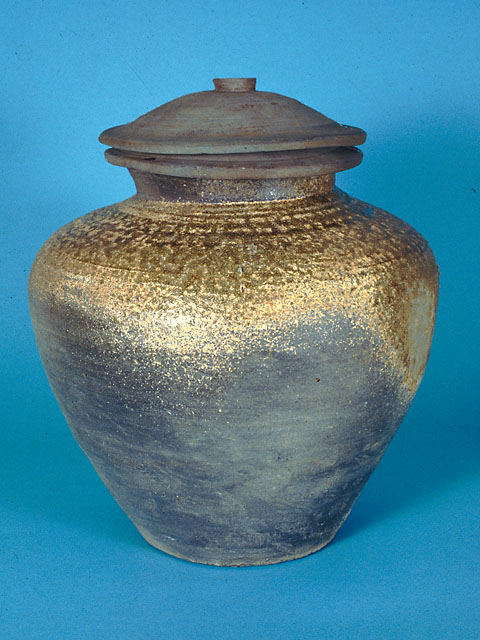 叺原遺跡の西側台地中央部で確認された、火葬墓群から出土した平安時代の蔵骨器です。土師器(甕)、須恵器(短頸壺・蓋)から構成され、中でも土師器の蔵骨器が15点を占めています。中でも2号墓、6号墓出土の蓋には「小渕福」の墨書銘が認められます。