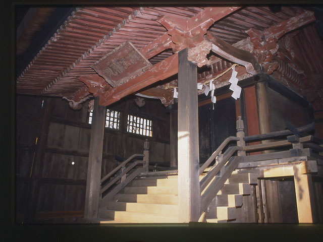 赤山陣屋の一角に祀られ、赤山陣屋敷絵図面にも記されています。創建年代については明らかではありません。「新編武蔵風土記稿」によると、江戸時代には村の鎮守と記されていました。同社内に八幡社、天神社も存在しています。当社殿は、江戸時代の覆屋に納められ、全体的に保存状態は良好です。形式は、本格的な一間社流造りで、形式から禅宗様の特徴がうかがわれ、江戸時代初期の当地方における神社建築様式を知るうえで貴重です。