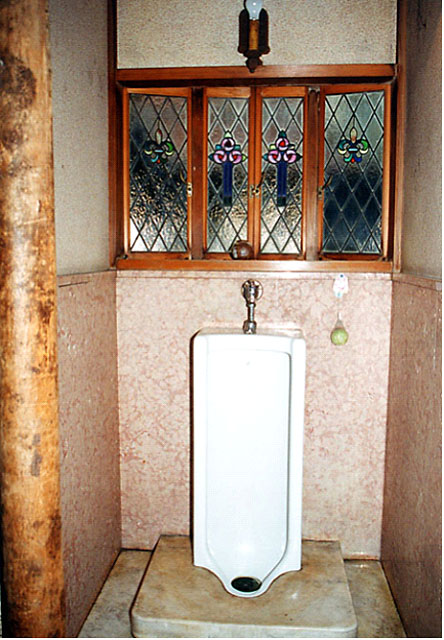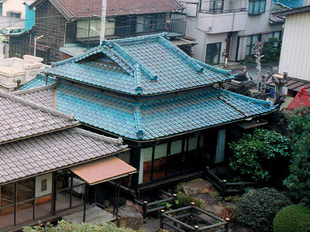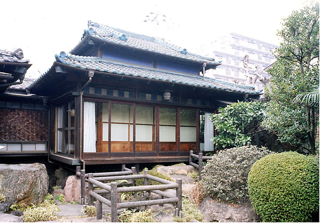 当建物は、昭和14年(1939)に、主屋の東に鋳物の販売の商談等のための迎賓施設として増築された建物です。10畳の座敷の北面に床・棚・書院を備え、三方に縁を回らし、北に外観を洋風にまとめた便所を付属します。当時輸入された黒檀やエシジュなどの銘木やステンドグラスを多用した華やかな造りで、近代和風建築の特色をよく表しています。