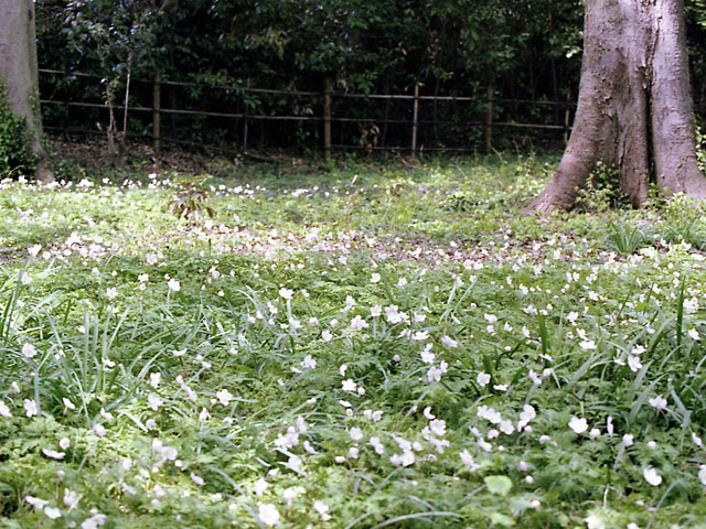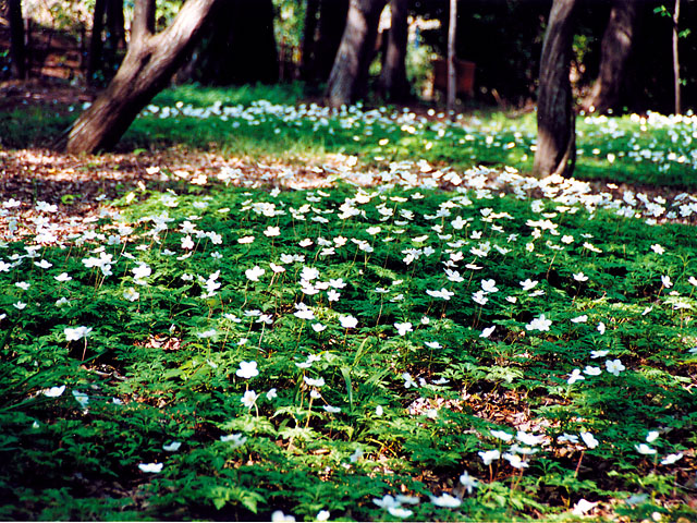 イチリンソウは、山裾の草地に生育する多年草で、もとは県の西部山間地や平坦部にみられました。近年その数が減少し、現在は県の準絶滅危惧種となっています。北足立郡部より東側では自然の分布域が見られず、当自生地はその東南端に位置していることは、希少価値が高い植物です。3月下旬に葉が伸び始め、4月中旬から下旬にかけて直径4㎝位の花を咲かせます。