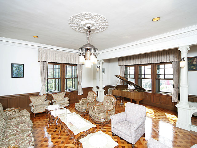 大正10年(1921)着工、同12年竣工の煉瓦造り3階建て、ルネッサンス様式の流れをくむ大正時代の本格的洋風住宅で、北側に蔵棟、南に台所を配しています。 4代目田中徳兵衞が迎賓施設として建設し、設計者は左立七次郎の下で西洋建築を習得した櫻井忍夫で、多くの地元職人が建設に携わりました。田中家は代々味噌醸造業と材木商を営んでおり、素封家としての暮らしぶりを今に伝える貴重な文化遺産です。