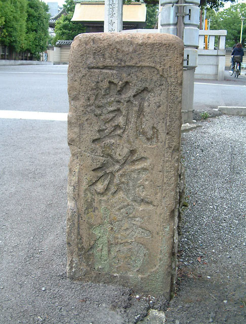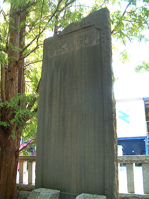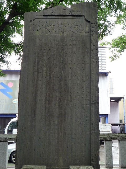 これは明治39年(1906)1月に日露戦争出征兵士の凱旋を祝し、旧川口町の町長以下町民たちによって架設された凱旋橋の跡と、川口神社境内にあるその由来を記した記念碑です。鋳物業が飛躍的に発展し、地域が発展していく契機となった日露戦争の記念となる文化財です。