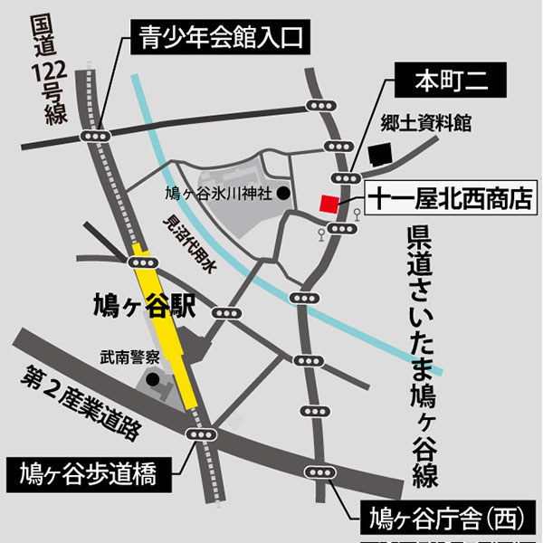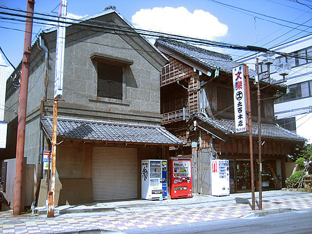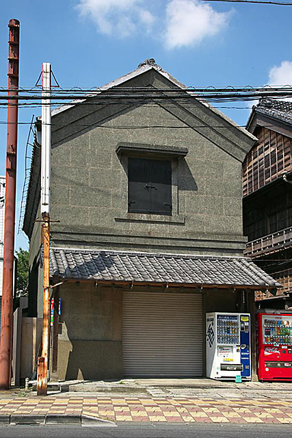 旧日光御成道鳩ヶ谷宿に位置する酒類販売商の蔵で、土蔵造2階建、切妻造桟瓦葺です。外壁をモルタル洗出し仕上げで石造風に目地を切り、鉢巻を廻らしています。店舗とともに宿場の面影を伝えています。