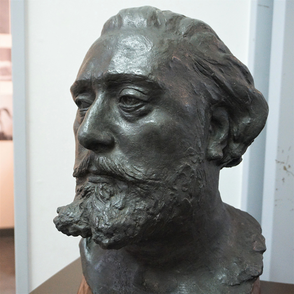 - 生没1856-1934。足立郡中居村(現在の川口市八幡木)生まれの明治時代を代表する彫刻家です。日本初の官営美術学校の彫刻科(1期生)を首席卒業し、油土や石膏を使う西洋彫刻を習得しました。ヨーロッパ留学で銅像制作を学び、靖国神社の《大村益次郎像》など生涯に100点以上の作品を手がけました。