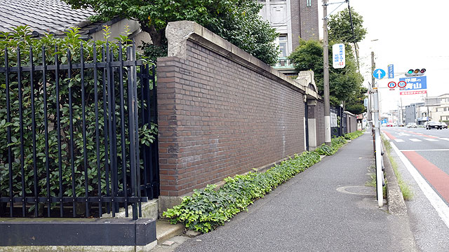 敷地西辺中央部の鉄柵の北方、南方及び敷地南辺を練瓦塀が煉瓦塀で、北方練瓦塀の2ヶ所、南方に1ヶ所の通用門を開き、北方の鉄門寄りの通用門にはアーチを架けています。洋館と同時期の建設で、敷地西辺と南辺の景観を整えています。