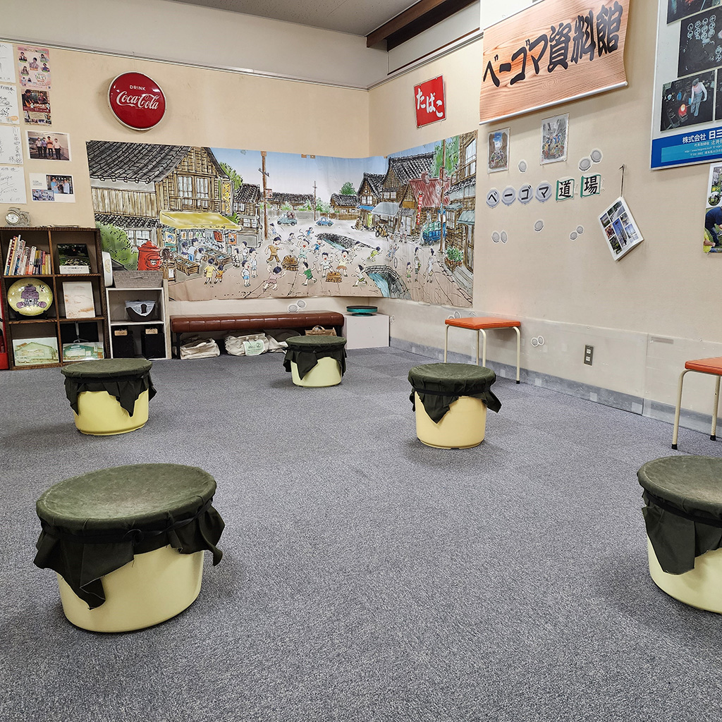 また、日本一の展示数を誇る貴重なベーゴマコレクションが展示されており、実際にベーゴマを回して遊ぶことができるスペースと、体験用のベーゴマ・紐も設置しています。