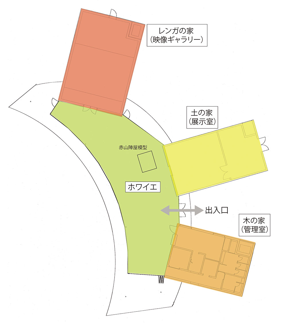 「赤山陣屋模型」の他、赤山陣屋周辺の過去と今を比較した図等の展示があります。